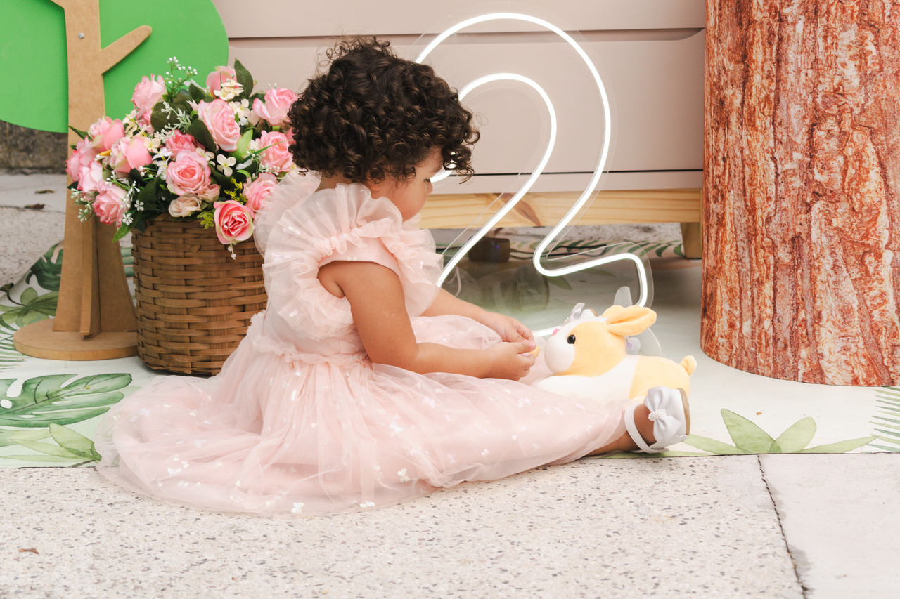 - Árvores frondosas, flores coloridas e bichinhos da floresta criaram um ambiente mágico e acolhedor.